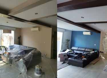 Ce projet de rénovation intérieure a combiné la préparation des supports et l'embellissement des espaces :